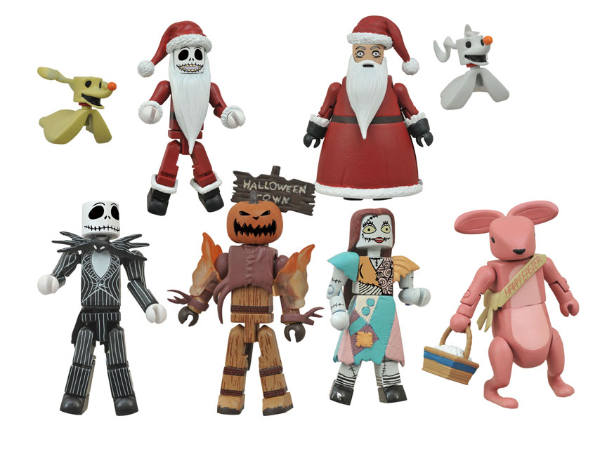 Who says Christmas can only come once a year? This all-new assortment of Nightmare Before Christmas Minimates features eight new blind-bagged figures, including The Pumpkin King, Santa Claus, Santa Jack, the Easter Bunny, Zero, new versions of Jack and Sally, and a rare, one-per-case glowing Zero! There’s a full set in every case of 18 foil bags, and each Minimates mini-figure features up to 14 points of articulation as well as interchangeable parts. Designed by Art Asylum! (Item #JUL152204, SRP: $5.99/ea.)