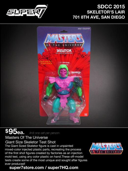 In addition to their previously announced Masters of the Universe M.U.S.C.L.E. and Stage 01 Prototype Action Figure Collection, Super 7 reveals tons more MOTU exclusives that will be sold at their Skeletor’s Lair Pop-Up Shop (701 8th Ave) during San Diego Comic-Con. The pop-up shop will require a Skeletoken to get in, the coin available at both Super7's Booth #4945 AND Mattel's Booth #3029. Once inside, MOTU fans will be able to purchase: