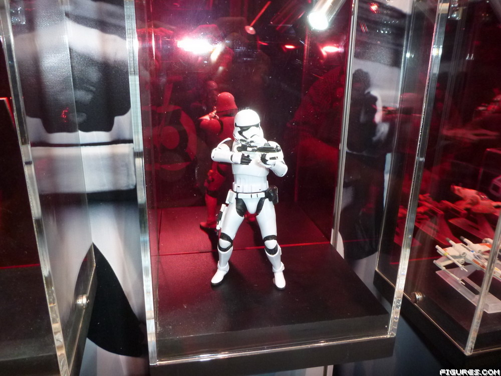 San Diego Comic-Con 2015 is going to be huge for Star Wars... but on Preview Night the Star Wars display at the Hasbro booth was sadly lacking. Have no fear, though, for there were multiple empty display cases with tags saying “New Figure Revealed This Friday At 1:30pm” so stay tuned! Now, they weren’t all empty; we did get to see the new Black Series First Order Stormtrooper along with other collectibles like the Star Wars RISK game, spaceships, Rebels, and currently available Black Series figures.