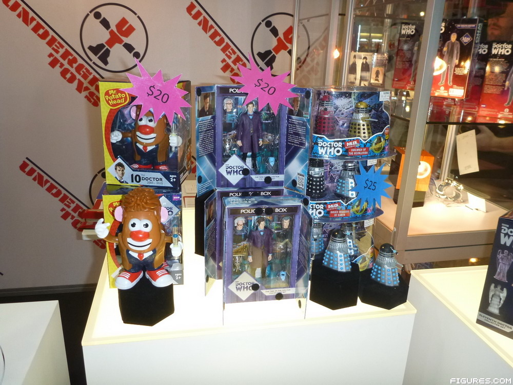 Underground Toys is famous for bringing Doctor Who figures and exclusives to San Diego Comic-Con, but they’ve made some changes over the last couple years. 2014 saw them take a break from selling to show products in glass cases, but this time around they had a retail booth with all sorts of fun collectibles and novelty items. Their lines include mega geek properties like Star Wars, The Walking Dead, and Ghostbusters, and of course British imports like Doctor Who and Sherlock. In our photo gallery you can see plushes, kitchen items, and even new Doctor Who figures! Look for even more new Who and Sherlock figures coming soon, and of course we’ll have all the news on those for you.