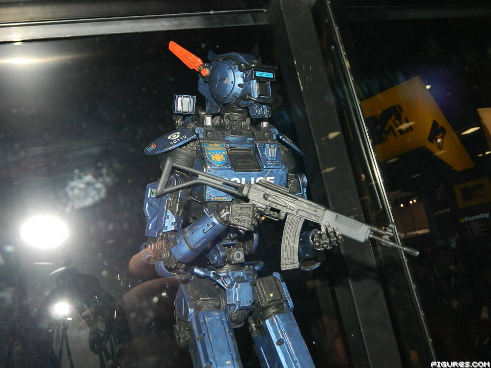A few days ago we took a look at what WETA had on display from the awesome movie Chappie at San Diego Comic-Con, but there was even more robotic fun around the corner at the Gentle Giant booth. Last year we covered the announcement of their epic 1/4 scale Chappie Scout 22 statue ($500, available now), but for all of us fans not ready to drop that much money Gentle Giant has a fun and cute alternative: the Chappie Chibi! Capturing the unique look of the TetraVaal robot in a super deformed style, this 3 ½ inch tall figure portrays Chappie as he looked after his transformation at the hands of “Mommy” and “Daddy” with bling, spray painted highlights, and even his throwing star. Look for Chibi Chappie in specialty stores next year.
