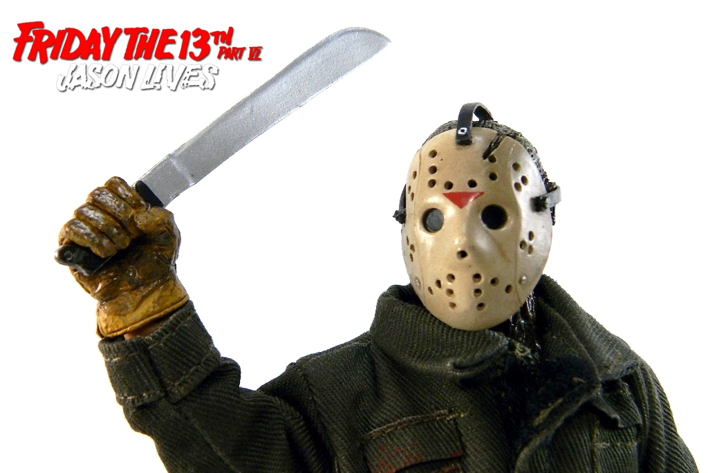 NECA revealed at San Diego Comic-Con that an "Ultimate" 7-inch Jason Lives action figure is in the works, the undead Camp Crystal Lake psycho ready to take-down some teens with improvised cemetery fence spear. Tombstone included. That figure comes out this Fall, but in the mean time Friday the 13th fans can own Jason Lives as part of NECA's newest 8-inch Mego-style action figure line. I'm a big fan of both action figure formats, and since this is my all-time favorite Jason Voorhees, I can never have enough Jason Lives in my collection.