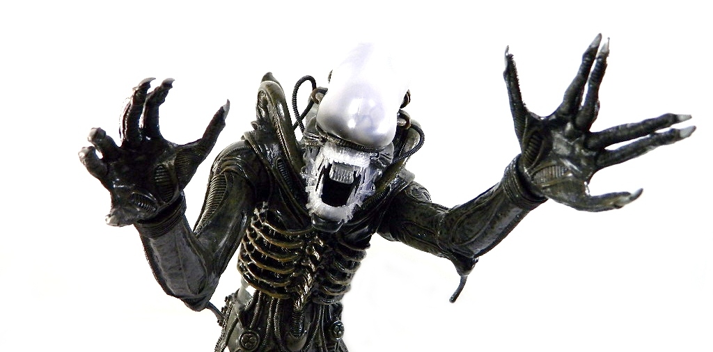 If you haven't already, go watch Dark Star: H.R. Giger's World (available for streaming on Netflix). It is an intimate docu-character study on the humble artist, who, shortly after filming in 2014, sadly passed away. One of my favorite parts of the documentary depicts what is probably Giger's most recognizable creation - the biomechanical creature featured in 1979's ALIEN. To me the Alien xenomorph is one of the most hauntingly beautiful things ever created. I'm what you would call a "die-hard" Alien fan and collector. I own a lot of Alien collectibles, some of my more recent favorites coming from NECA. The collectibles company has captured the Alien in toy form in a variety of different formats over the years. From whimsical Scalers, Head and Body Knockers, to more seriously sculpted 7-inch and 18-inch scale action figures.