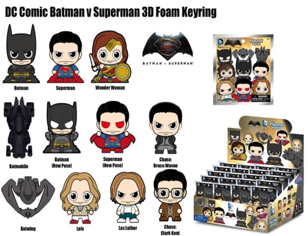 • From DC Comic’s upcoming movie Batman V Superman, Monogram will be offering the new Batman vs Superman Logo Pewter Key Rings in 2 styles, along with a new series of DC Collectible 3D Foam Key Rings featuring popular characters such as Batman, Superman and many more great characters.