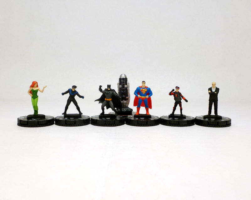 The bad guys in this pack don’t make a solid team on their own but provide a great base when paired with other figures. Lex and Ivy together are 125 or 75 points depending on which starting line you use for Pamela. Add Toymaster to that mix (for science) and it bumps the group up to 175 or 125. The good guys offer a lot more options both within this Fast Forces group and with figures outside of it. Superman, Batman, and Nightwing at their highest starting values (150/100/50) add up to an even 300 points for a super easy team. Alternatively, drop Batman to his lower starting line (50) and you can fit in Toymaster as well for more support at 300 points. If you want to use these figures to fill out a bigger team you can drop Superman, Batman, and Nightwing to their lower starting values (100/50/25) and get the foursome with Toymaster for the bargain basement price of only 225, leaving you 75 points to add another attacker, support piece, resource, etc. Lastly, if you like to field mixed teams of heroes and villains bring the whole Fast Forces party together for 400 points by dropping Poison Ivy and Nightwing to their rookie levels (25/25).
