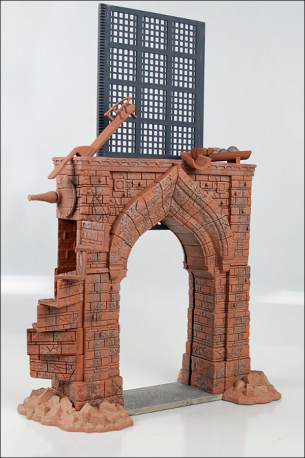 The set depicts a key action sequence from the feature film and contains unique play action features including a spring-loaded rock launcher, retractable gate, secret compartments, hidden traps, slides and working cranks. The Alamut Gate playset includes a 4-inch action figure.