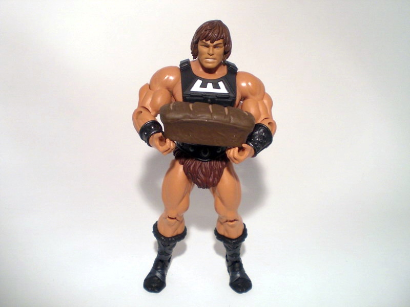Wun-dar is simply a repaint of He-Man wearing black cosmic chest armor. The greatest thing about this figure is the loaf of bread accessory it includes and a cleverly placed decal on the back of the chest armor which features the same three colored dots featured on a Wonder Bread package.