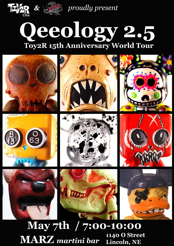 Toy2R USA and Local Hero Design present the Qeeology 2.5 Exhibit on May 7th, a unique show featuring over 100 customized 2.5" Qees from more than 70 artists from across the globe. From Poland, Germany, Canada, the United Kingdom, Spain, and multiple states within the USA - this is truly an international event. The first "little" Qee show is the next leg of the 15th Anniversary World Tour celebrating Toy2R's milestone anniversary in the designer art toy genre.