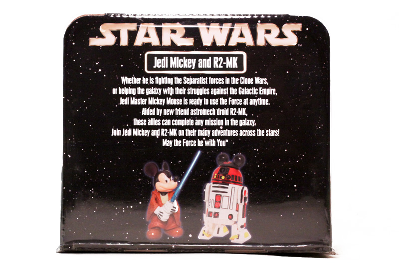 The packaging for the buddy pack is very similar to the previously released Jedi Mickey with Yoda a few years back. The Mickey/Yoda pack has since been discontinued and in its place is R2-MK. The box shows off both figures clearly with a small blurb description on the back. It's not the most collector friendly display but at least it looks good in or out of the package.
