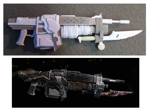 Pictured above is an early prototype of the weapon in toy form. NECA reveals that it will come with their new Gears of War 3 Marcus and Dom action figures which the company hopes to have on display at San Diego Comic-Con.