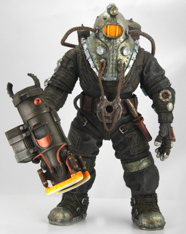 Upcoming BioShock Figures: Series 3's Crawler Splicer with mask and hooks (fall 2010 release) and Alpha Sinclair showing off his Grenade Launcher accessory (2011 release).