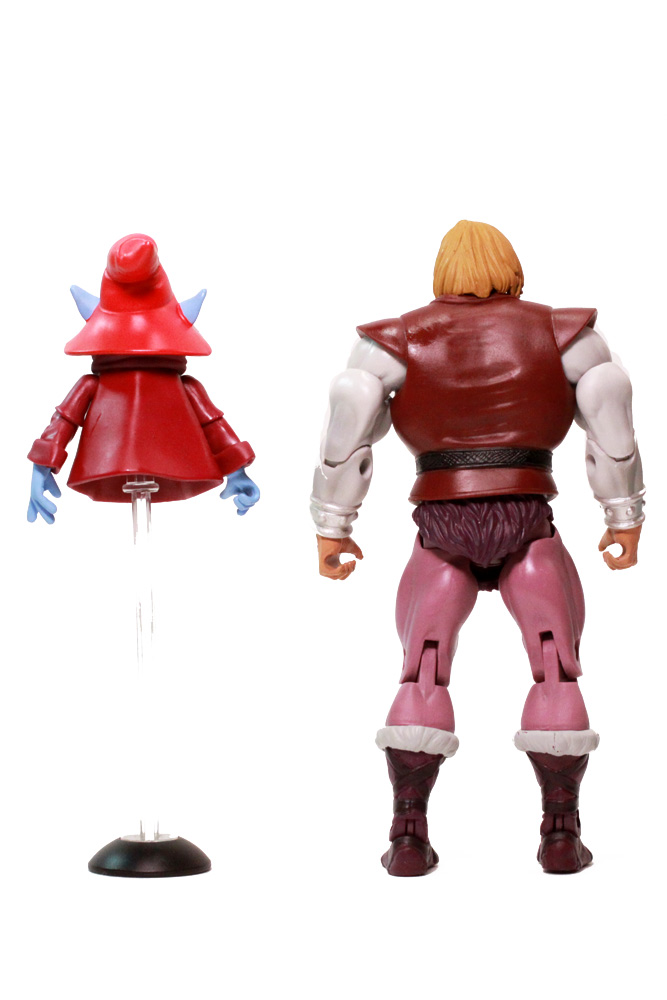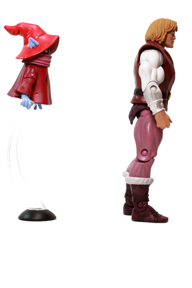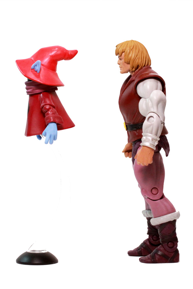 Prince Adam sports the usual articulated joints found on MOTUC figures (over 20) while Orko doesn't do all that bad either with eleven points of articulation. He has ball jointed shoulders and elbows, with additional joints in his wrists and neck. And because his head is on a ball, you can adjust his face a bit above his mask if you so desire.