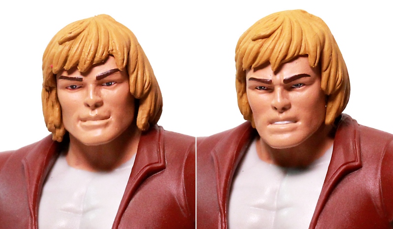 For this update, Prince Adam comes with He-Man grimacing head but also a brand new sculpted "smirking" head for Prince Adam. What's even more fantastic is that you can swap these heads with He-Man if you wish.