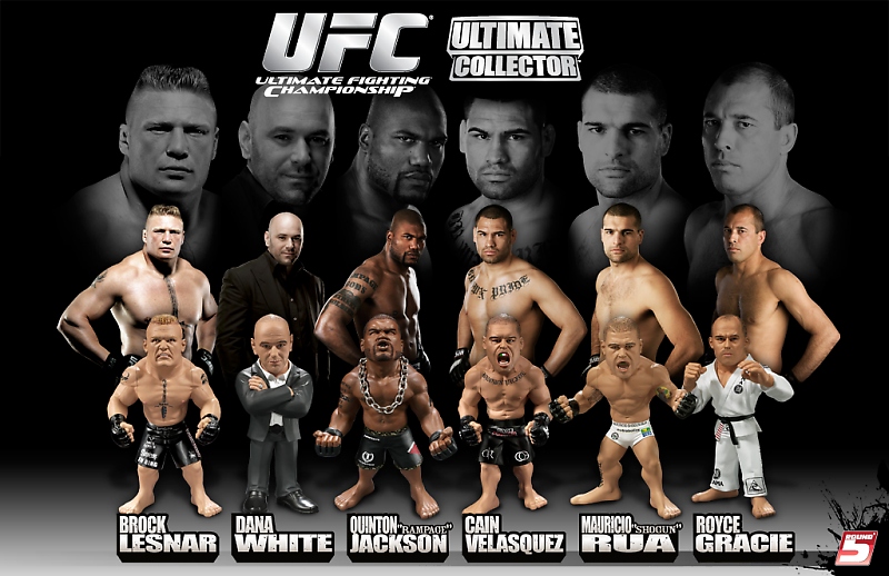 Round 5 reveals their latest assortment of UFC collectible figurines: "Ultimate Collector" Series 4. The new series will feature new standard and Limited Edition sculpts of seven different UFC personalities, including Royce Gracie, Brock Lesnar, Quinton "Rampage" Jackson, Cain Velasquez, Mauricio "Shogun" Rua, Dana White (regular only) and Bruce Buffer (Limited Edition only).