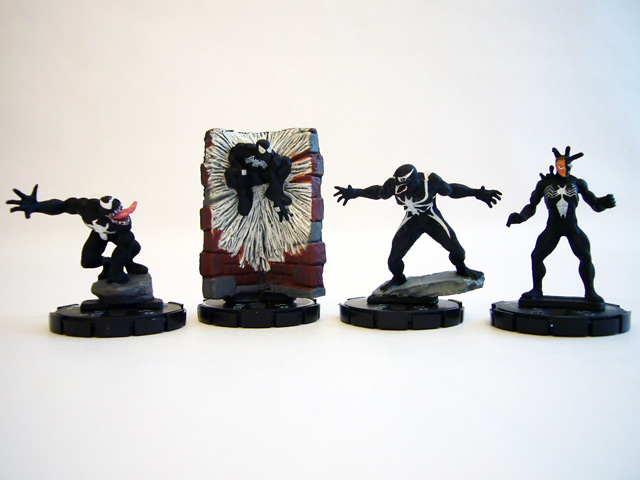 Last week we took you inside the world of the new Marvel HeroClix expansion set, Web of Spider-Man, with an in-depth look at the base set available in boosters near you on September 8th (click HERE if you missed it). I also gave you a sneak peek at one of the exclusive Limited Edition figures that’s only available in special prize kits at comic book and gaming stores. These are repaints of five figures in the base set representing different characters with their own sets of powers and stats. After last week’s Toxin we’ll be delving into the Dark Avengers with none other than the Sinister Spider-Man, Venom, as well as checking out the prize kit’s 3D Web Special Terrain Markers!