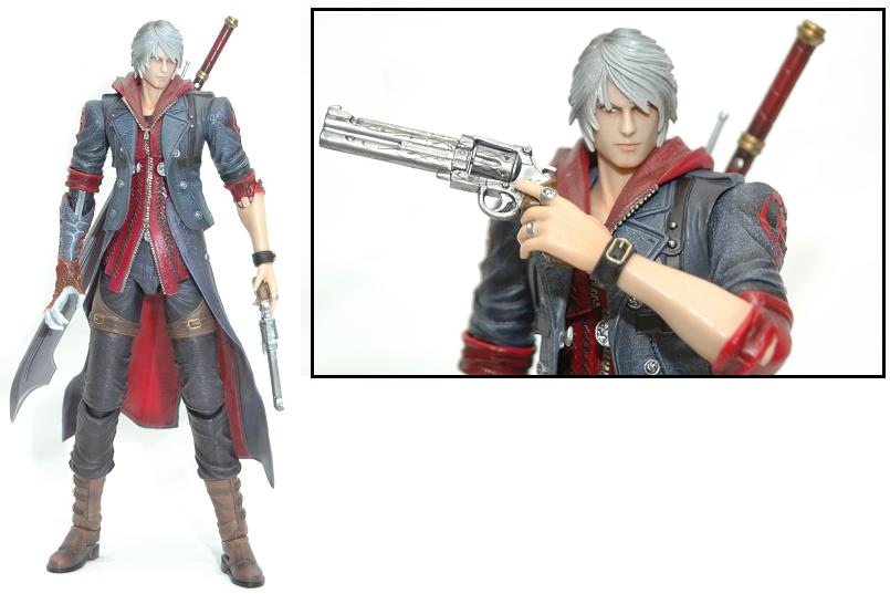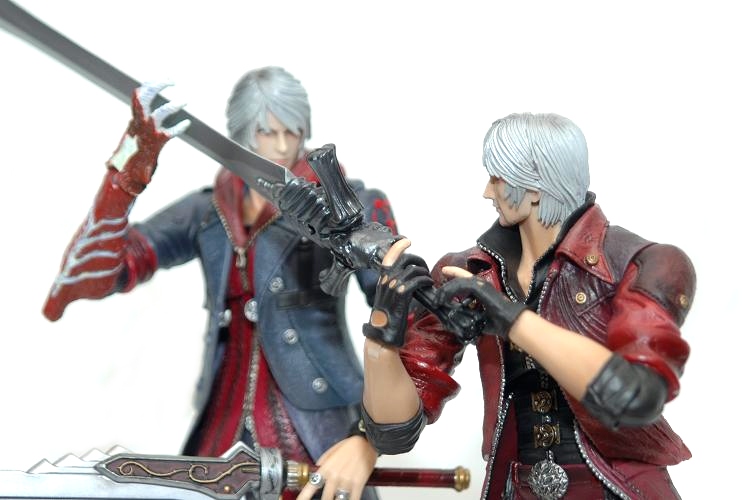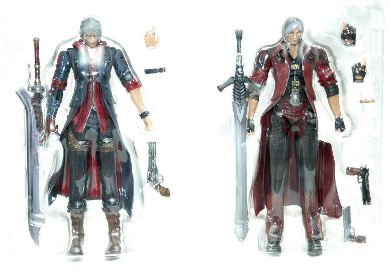 ACCESSORIES: Similar to one another not only in look and design, but also in weaponry, both Dante and Nero figures include game accurate accessories. Similarly, both wield massive swords as well as unique firearms. Dante includes his family heirloom blade Rebellion and his trusty Ebony and Ivory semi-auto pistols while Nero wields the motor-cycle gripped Red Queen sword and Blue Rose revolver pistol.