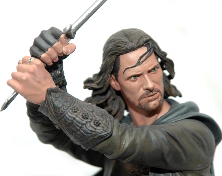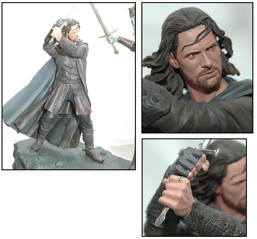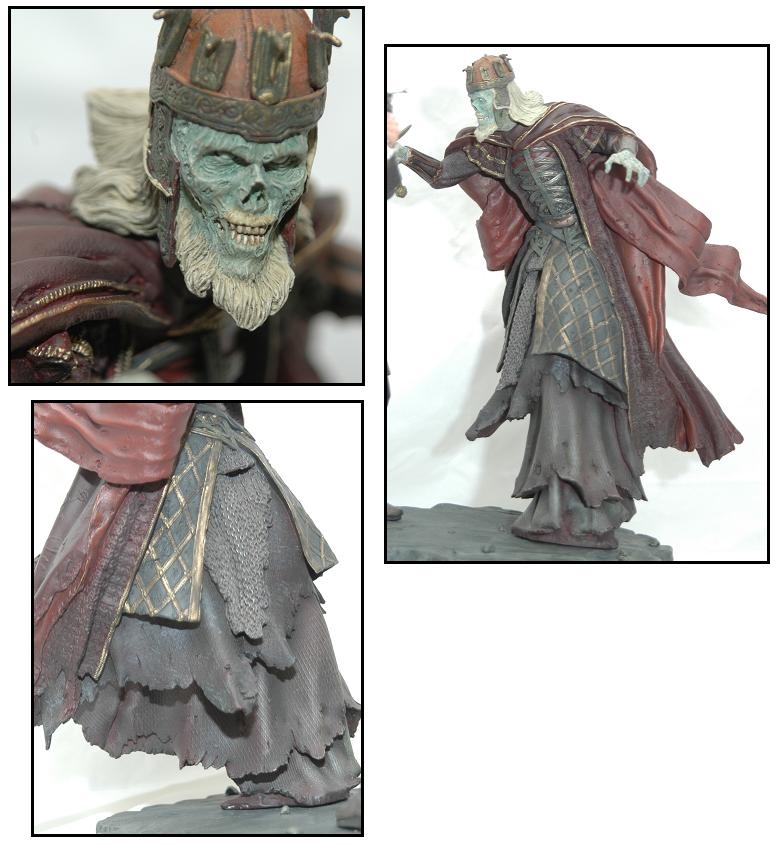 PAINT APPLILCATION: To compliment the amazing sculpt, artists at Sideshow have expertly painted this piece with detailed colors accurate to those seen in The Return of the King. Aragorn’s dark, woodland colors, including his green/blue cloak, gray boots, brown coat and black pants, are all perfectly captured here. Likewise, the royal red and gold on the King of the Dead’s cloak and armor give him a drastic, opposite look to Aragorn.