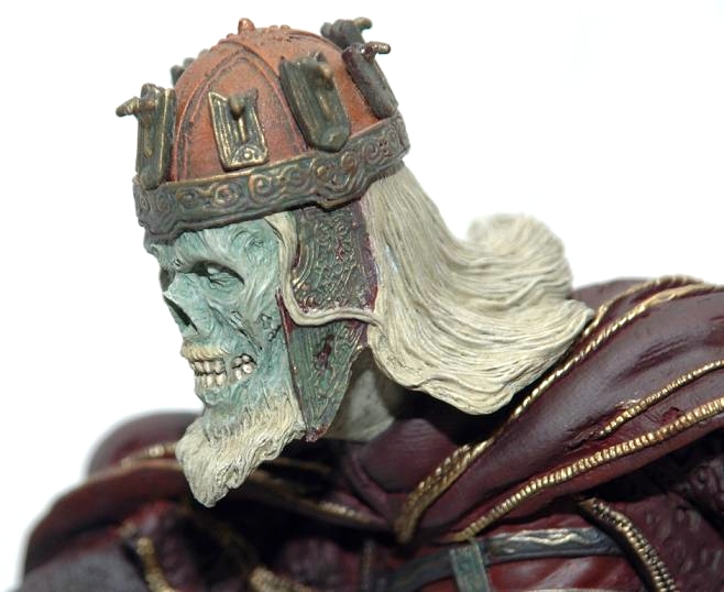 Minute details, including Aragorn’s ring, tiny rusting portions of the King’s helmet, and the detail on the kings’ swords, are perfectly painted. Most impressive, the King of the Dead’s blue skin and white teeth and beard perfectly capture his ancient look and…deadness.