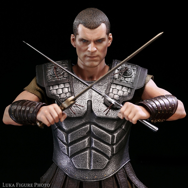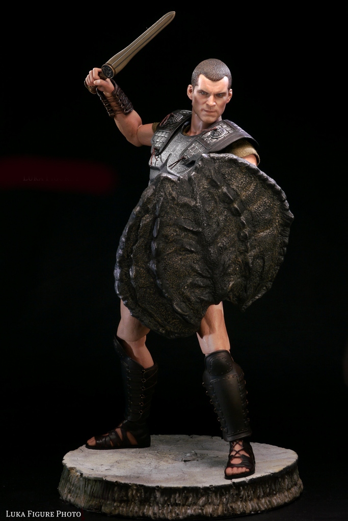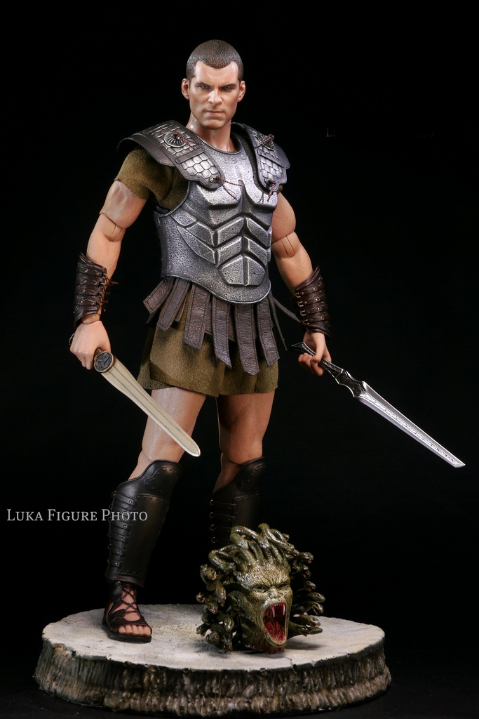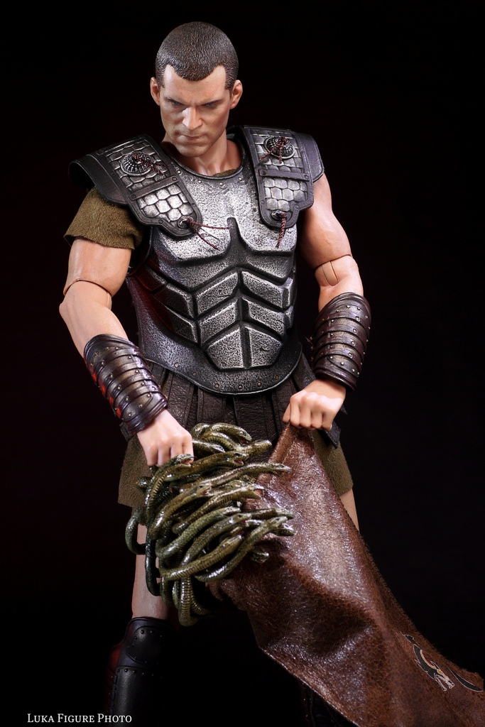SCULPT: The fantastic head sculpt by Kojun captures the likeness of Sam Worthington flawlessly in three dimensional form. Contrary to popular belief, the head sculpt on Perseus is not the same as the Marcus Wright figure from theTerminator Salvation collection. Perseus' body consists of newly devoloped muscular buck with realistic skin texture. The ornate armor worn by Perseus is sculpted beautifully and is identical to the one worn by the character in the film. The shin and arm guards look amazingly life like as do the gladiator-styled sandals.