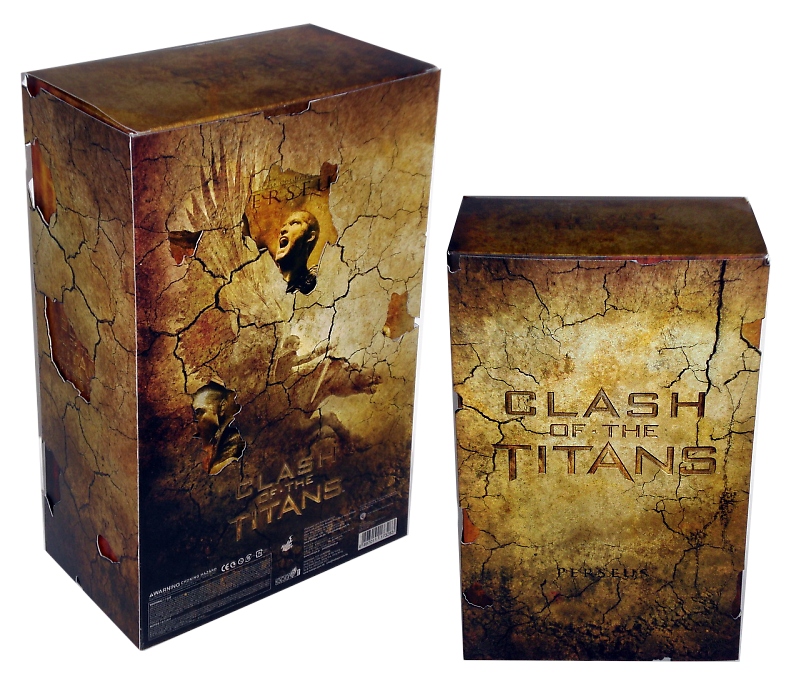 PACKAGING: Once again, Hot Toys has pushed the envelope with their package design on this figure. Perseus is housed within a window-box surrounded by images from the feature film. The cardboard outer sleeve is made to look as if it were made of stone with realistic cracks and holes throughout. The cracks and openings on the outer sleeve are strategically placed to reveal certain images from the main window-box beneath. This one of the most visually impressive package designs Hot Toys has created so far this year.