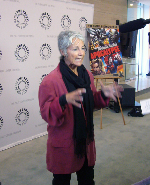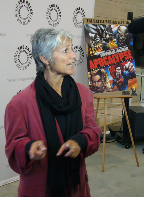 First up was Andrea Romano, casting/dialogue director for Superman/Batman: Apocalypse (not to mention nearly 100 other animated project stretching back all the way to 1984)! The always pleasant Romano was eager to discuss this project. I asked her what was "new and different" about S/B: Apocalypse, to which she replied that it's the first time in the DC films we'll be seeing Darkseid! And he won't be simply a rehash of the character from the animated series, but even more evil, with an elegant side as portrayed by Andre Braugher. Also appearing for the first time is Supergirl, who provides a whole new view of the DC universe – innocent and ignorant of culture. Andrea described the film's "dichotomies: there's a more sophisticated Darkseid and the innocent Supergirl, and at the same time the pair of Superman and Batman. Then there's the issue of the first new Kryptonian (other than Superman); Kal-El and Kara didn’t even know each other existed!" When asked about the return of Tim Daly as Superman Romano recalled his "great acting ability. He has friendliness, and while he's not dark (that's Batman), he is tremendously strong. He's a perfect everyday good guy."