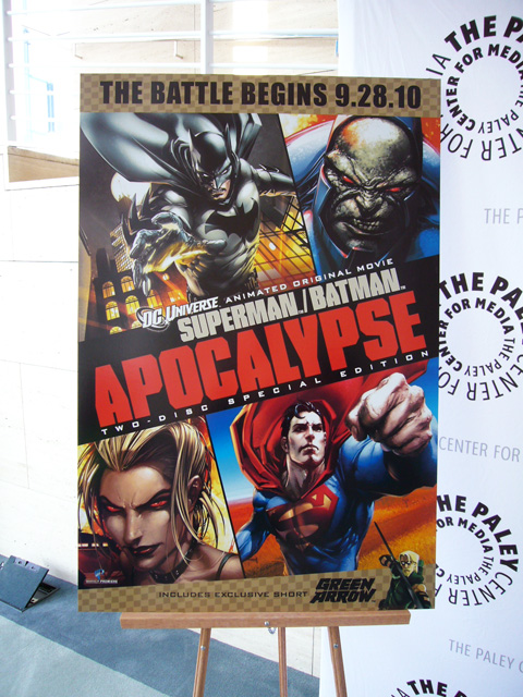 After the film came a Q&A/panel discussion with the night's guests. The moderator for this event was a gentleman from UGO, the other sponsor of the event. He was thoroughly versed in the story as well as the larger DC universe, and couldn't wait to get started. But first came the obligatory reminder of the film's release on DVD, Blu-ray, and digital download on September 28th. Certain versions will also come with the latest DC animated short film, Green Arrow!