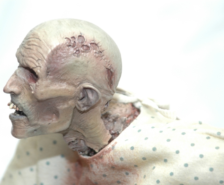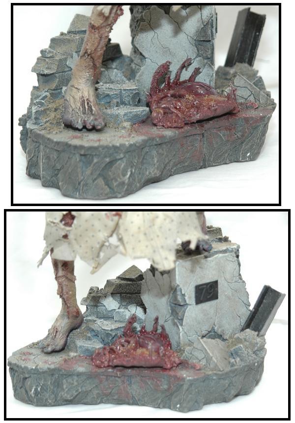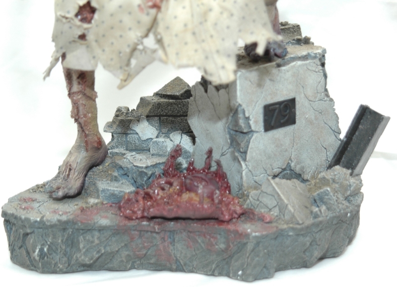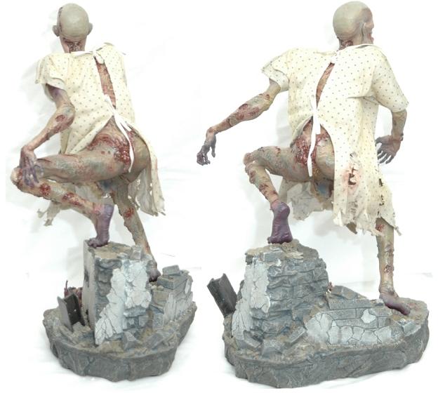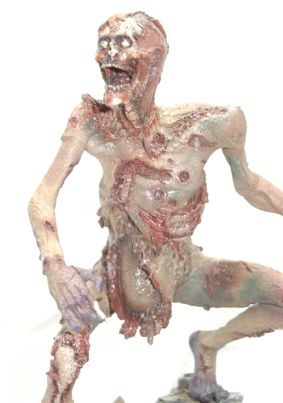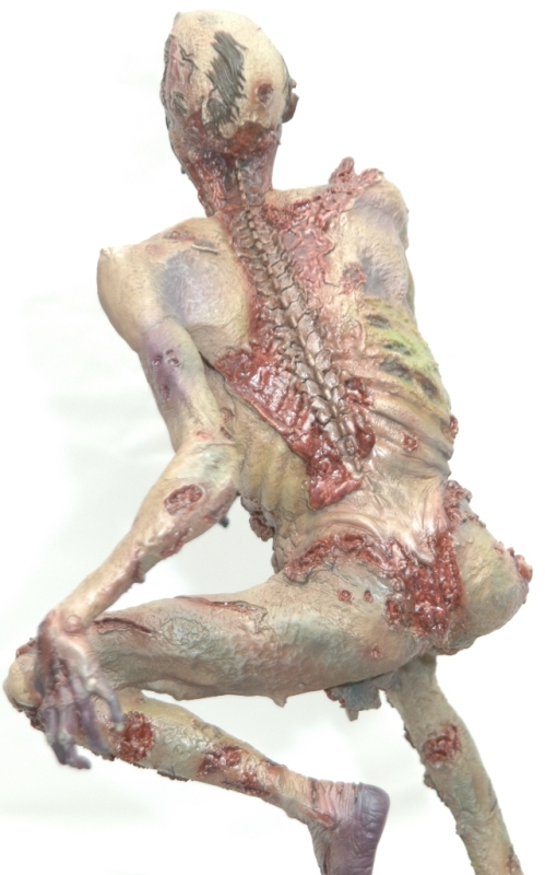 The most disturbing thing to me wasn't the perfectly detailed fleshless head with exposed yellowing bone, it was a single green area on the figure's back which made it look almost too dead (if there is such a thing?). Where's this zombie been? How long has it been dead for there to be green stuff growing under its skin?!?
