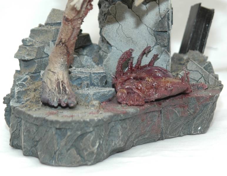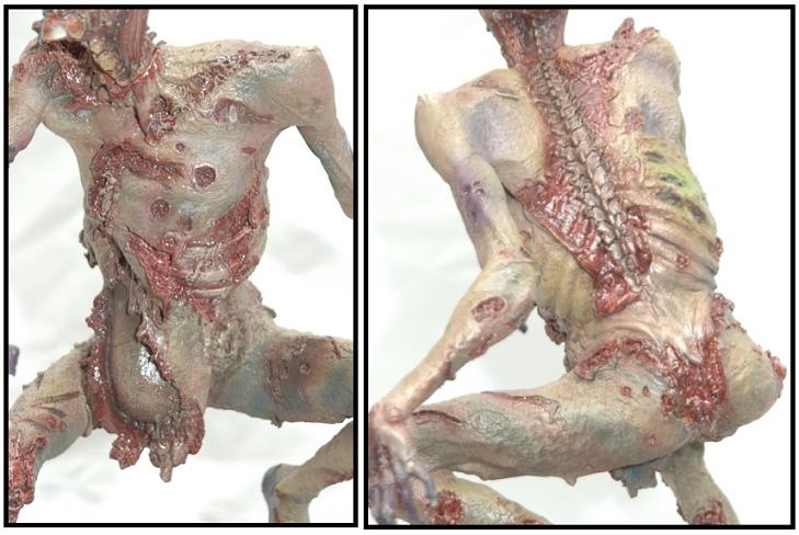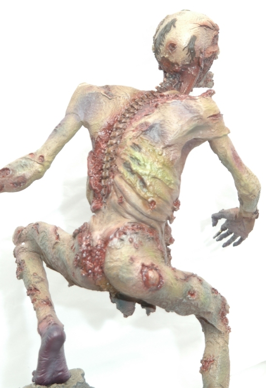 Overall, the sheer sculpted detail in this statue is mesmerizing. From the previously mentioned flayed muscle tissue and the protruding and exposed spinal column to the festering sores and two unique head sculpts, fans of the undead will instantly be attracted to this monster.