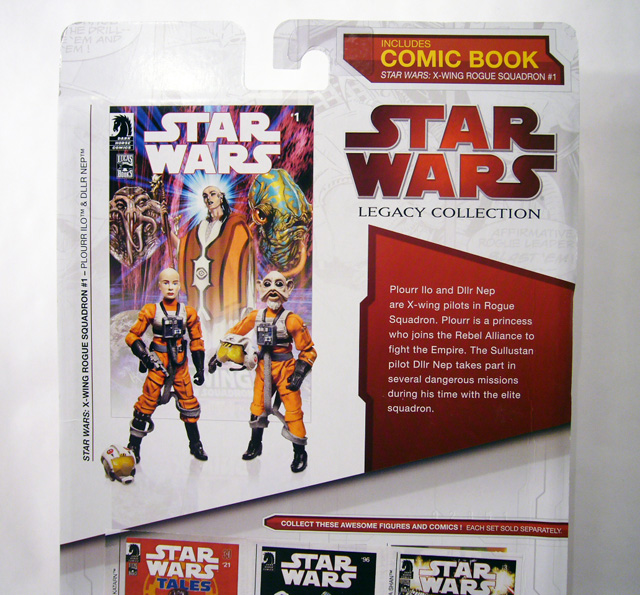 One of the sub themes in the comic packs has been the collected members of the famous X-Wing Rogue Squadron who have starred in their own comic books, novels, and video games. As the line moves away from big box toy stores you can get the latest and greatest online, like the online exclusive Plourr Ilo & Dllr Nep (X-Wing Rogue Squadron) Comic Pack!