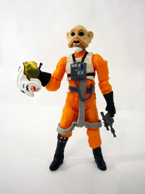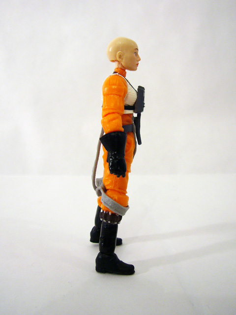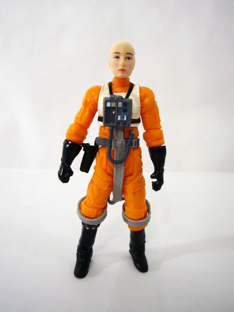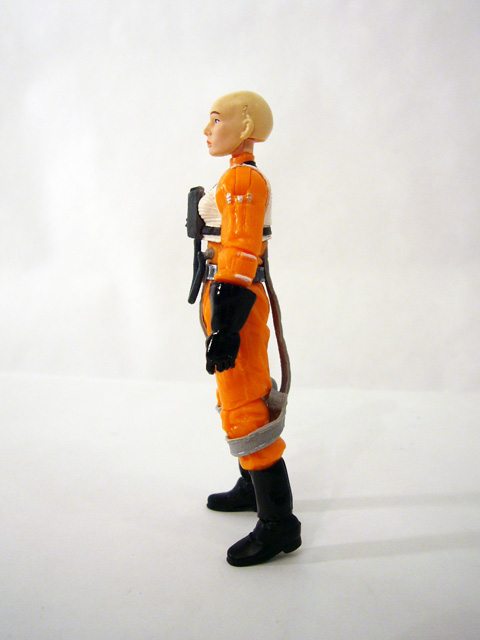 With new sculpts came great modern articulation schemes, and so both of these figures have ball-jointed necks, ball-jointed shoulders, ball-jointed elbows, forearms at the glove line, a ball-jointed torso, hips, ball-jointed knees, and ball-jointed ankles. You really can’t ask for more, and the Rogue Squadron pilots are capable of all sorts of great poses. To go along with their outfits both Plourr and Dllr come with helmets and identical BlasTech DL-44 blasters. The helmets are race-specific (so Nep’s will fit on his oddly shaped head), and look really good with translucent yellow visors. They also fit nicely, which is a plus. Both figures can hold their pistols for when they take the fight out of their X-Wings, but only Plourr has a holster to sheathe hers.