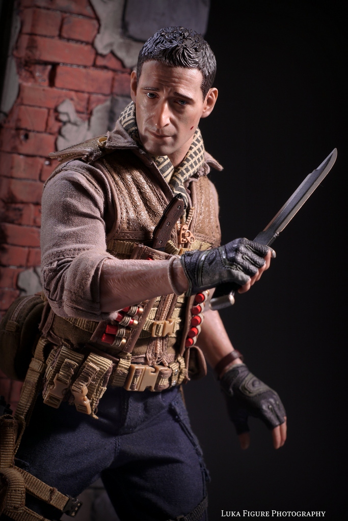 SCULPT: The most significant element of the sculpt work on this figure is that of the head portrait. The realistic likeness of actor Adrian Brody is captured flawlessly by artist Eom Jea Sung. The realistic head sculpt enhances this figure by offering a fantastically movie-accurate 1/6 scale figure for collectors. The Royce figure also features a newly developed muscular body similar to the one used for the previously-released Perseus figure. The muscular details on the arms and shoulders such as skin tone and muscles are sculpted to resemble Adrian Brody’s physique in the film.