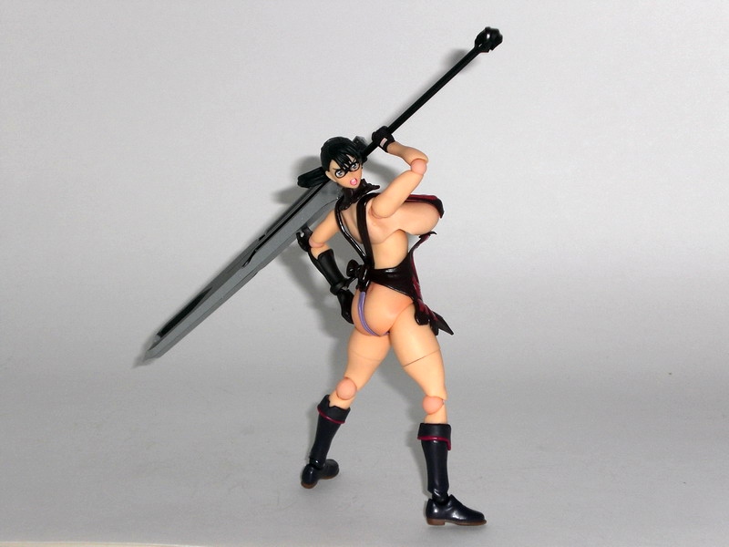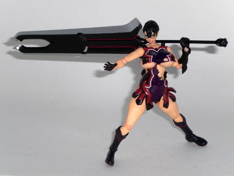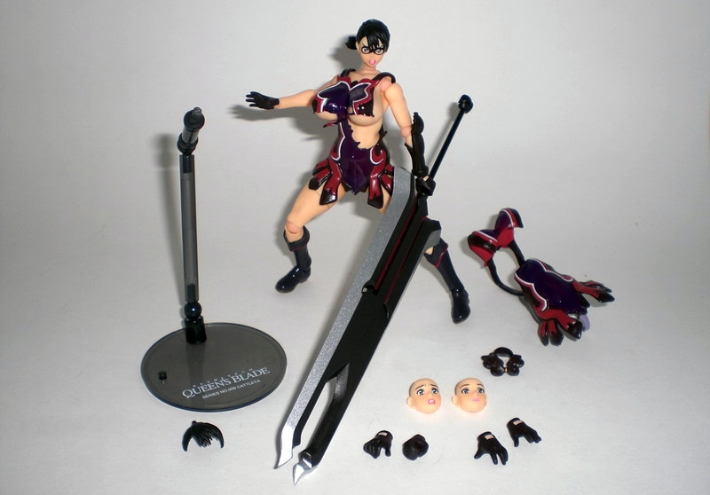 ACCESSORIES: When it comes to accesories, Cattleya does not have many aside from her gargantuan broad sword and interchangeable hands and faces. Cattleya also includes a display base with adjustable rods but unfortunately it does not support the figure’s weight because of its exaggerated proportions. Thankfully, Cattleya’s broad sword does support the figure much better than the stand and holds up the figure quite well in many different poses. The figure has three different faces which can be switched out by removing the frontal half of the head piece and two individual hair pieces allowing you to display Cattleya with or without glasses. The figure also conveniently includes a plastic square container to store all of the figure's parts inside.