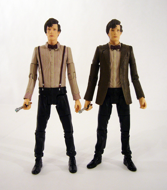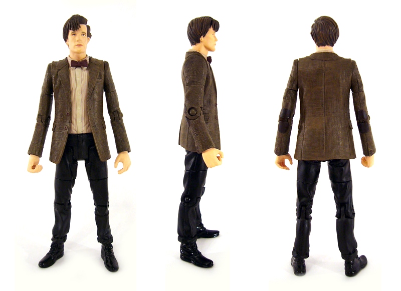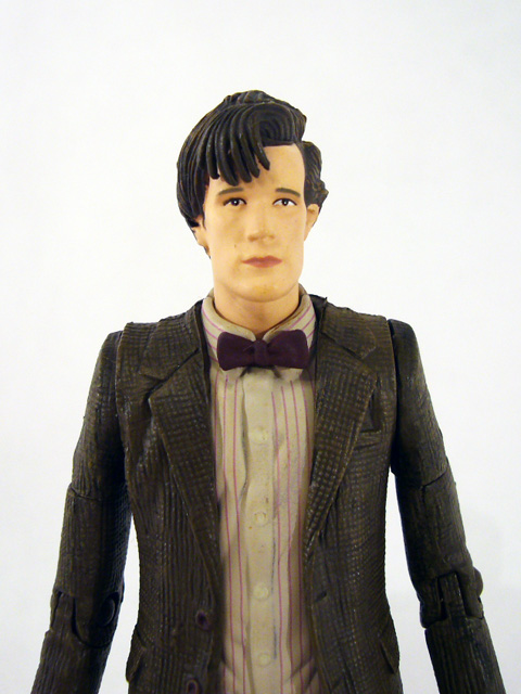 Likewise, the paint job is very close to the other version, with the obviously biggest exception being the Doctor’s coat. Shoes and trousers are black (shiny and matte respectively), while his shirt is a pale tan with slight red pinstripes and bowtie in dark burgundy. The unique jacket is a deep brown, which looks really good thanks to the subtle texturing on it. Finally, this version of the figure has an ever so slightly darker flesh tone and the usual high standard of paint applications on the face.