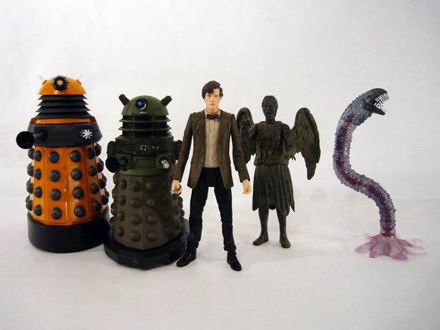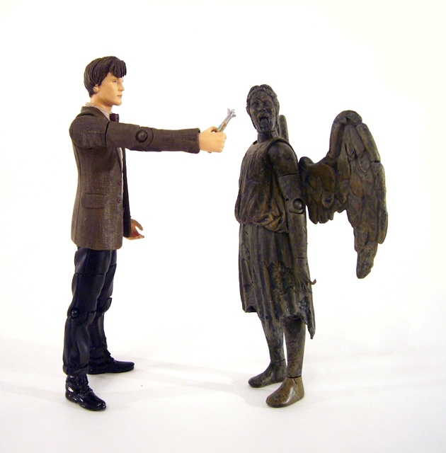 Underground Toys’ continuing line of modern Doctor Who figures is the absolute one stop shop for your Time Lord toy fix, and nothing has changed with the newly minted Eleventh Doctor played by Matt Smith. With Daleks and aliens, Doctors and companions galore, there’s truly something for everyone and everything for hardcore collectors. 2010’s first series of figures had just that with the Eleventh Doctor himself, companion Amy Pond, Professor Bracewell, Hawthorne, Peter the Winder, Dalek Ironside, and of course the Weeping Angel (Regenerating). Today we’ll be looking at the first and last of those, an epic standoff between the Doctor and a seemingly unstoppable foe.