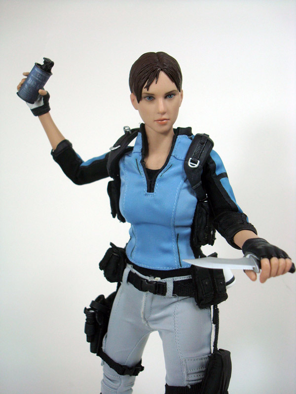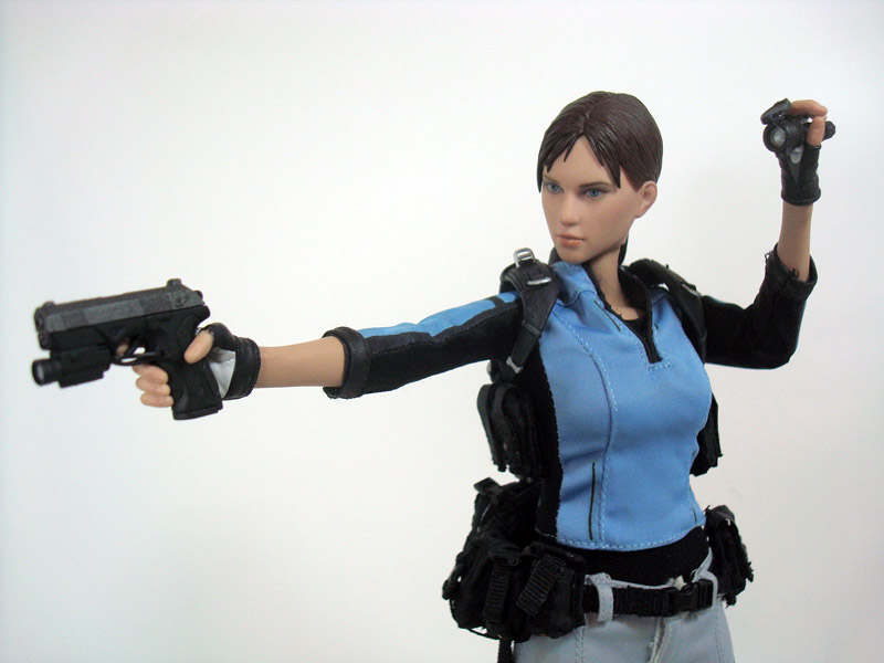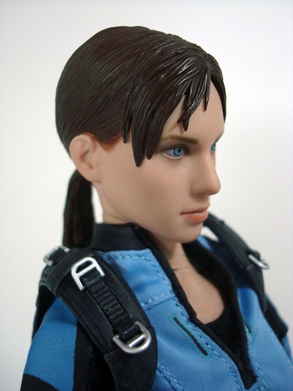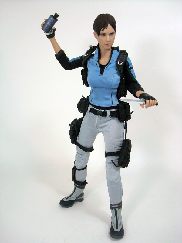 SCULPT & ARTICULATION: Jill’s head sculpt is gorgeous, with soft features that perfectly match the in-game model and artwork. Like Sheva before her, she features the Hot Toys TrueType female body with a rubber suit that covers the articulation point and provides soft, rubbery skin on her arms and body. While it looks great, and feels more life-like it does make the figure more fragile and hinders poseability. The figure overall has around 30 points of articulation.