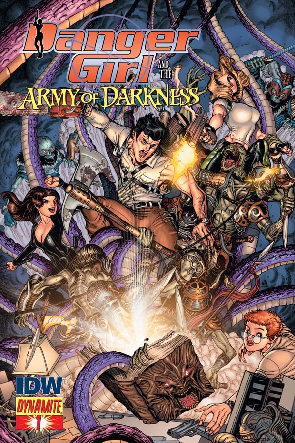 "Danger Girl and the Army of Darkness has been a long time coming," says writer Andy Hartnell. "Fans of the original Danger Girl series may recall seeing the infamous Necronomicon in the library of one Abbey Chase, way back in her days before joining the Danger Girl organization. They've always asked what that was all about. Well, now is the time to revisit that adventure. Now that Abbey is a full-fledged Danger Girl, with her new skills and allies, she also has the 'help' from some knucklehead named Ash."