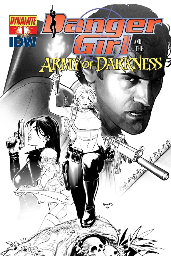 "Many artists go through an entire career without one real signature project, and I've been fortunate to have to with both Gen 13 and Danger Girl," says artist J. Scott Campbell. "And I really enjoy the Army of Darkness movies and absolutely love Bruce Campbell! This will be an incredibly compelling series!"Abbey Chase, the world's most daring adventuress, returns to action as she aims to recover a dark and mysterious piece of ancient history. When Abbey learns that the elusive Book of the Dead has resurfaced and fallen into nefarious hands, she and the Danger Girls embark on a mission to track down the powerful tome. But when their journey leads them to cross paths with another seeking the book - a man with a personal vendetta and a literal hand in the book's sordid history - they find themselves spiraling through the most outrageous and sure-to-be-talked-about cross-over event of the year!