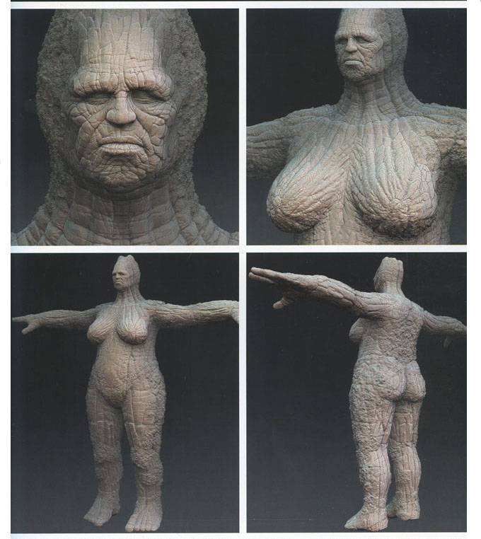 The next, longer section will be one which impresses most readers looking to find out more about the characters. Within Concept Art: Characters readers find everything from sketches and drawings to full-color paintings and ZBrush models of the game's characters. Everyone from main characters like Kratos, Zeus, Poseidon, Hades and Gaia (below), to minor characters, monsters and minions like the Legionarries, the Olypic Archers, Poseidon's Princess, and the evil monsters are featured here. Most impressive, readers are allowed to see the progression in design of many of these characters from rough sketches done hastily and without detail to finely detailed paintings and CGI models used within the game. This provides a "behind-the-scenes" experience for readers, allowing them the opportunity to watch - quite literally - as these characters change and progress from concept to creation.
