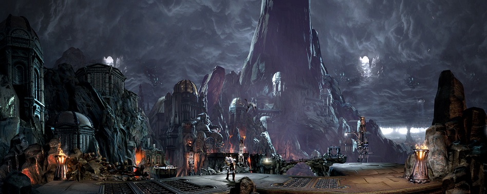 The last two sections go hand-in-hand and feature the many amazing settings from the game. Both Concept Art: Environments and Production Art: Environments give readers a look at both the early sketches and designs of the game's settings as well as the finished computer-generated products used in the gameplay. The amazing part of these sections is the use of scale and how, through scale, players are truly thrust into an over-the-top Greece, filled with mountains, canyons, caves, palaces, and more. From Hades' arena and the Skydomes of Tartarus to the Mt. Olympus and it's beautiful vistas, each and every setting is explored to provide readers, players and fans a reason to reminisce.