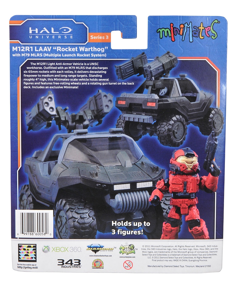 Taking a cue from McFarlane, Diamond Select Toys is making the most of their Halo: Reach license by rolling out mulitiple versions of the popular UNSC Warthog vehicle. Pictured is the new "Rocket Hog," a Warthog equipped with powerful twin rocket launchers. Able to seat three Halo: Reach Minimates, fans can find this tiny ride exclusively at Toys"R"Us.