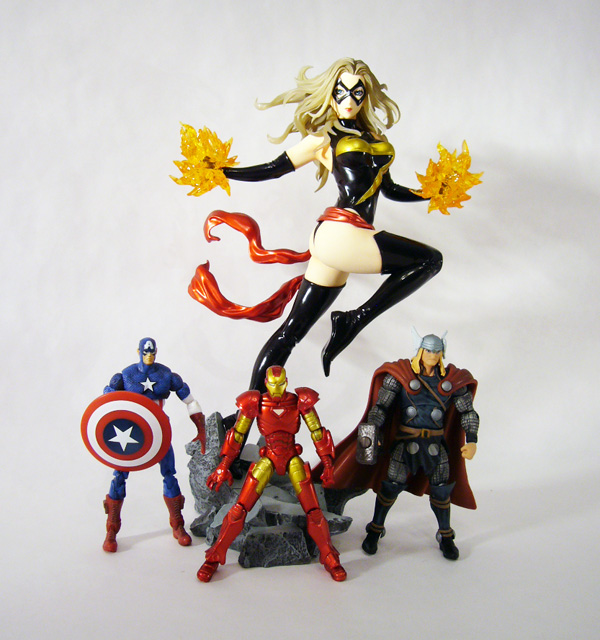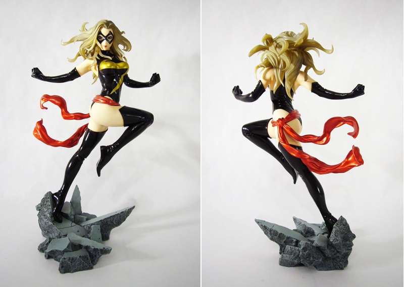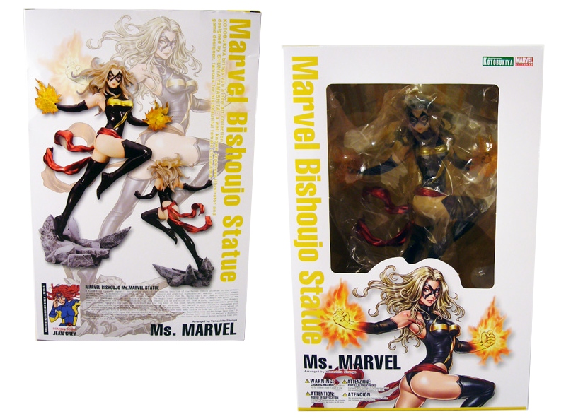 In 2009, Kotobukiya launched its Marvel Bishoujo Statue line bringing together two great flavors that taste great together: the beautiful female superheroes and villains of the Marvel Comics universe and the unique Japanese Bishoujo (“pretty girl”) style. The end result was a big hit with collectors around the world, and since the initial release of Rogue, the line has gone on to include about a dozen statues including convention exclusives and variants. The latest addition, and our subject today, is a character who’s been around for a long time and is now considered one of Marvel’s top heroines: Ms. Marvel!