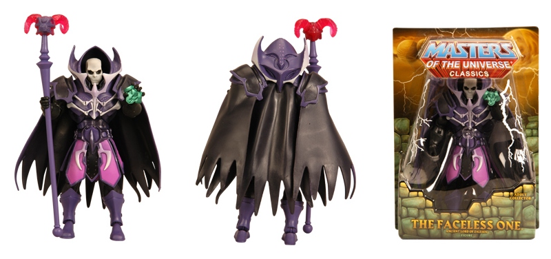 * MOTUC The Faceless One: Club Eternia Figure of the Month for June is armed with his Havoc Staff and removable Ram Stone. Included with 2011 Club Eternia subscriptions.