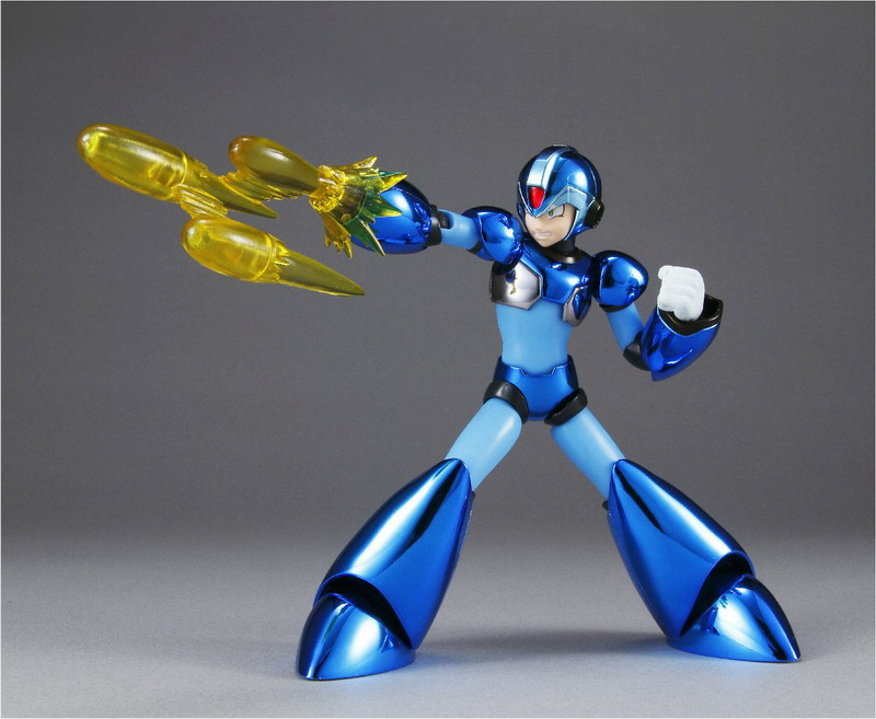 Bandai Japan's premium collector's label, Tamashii Nations will be offering a very exclusive Mega Man action figure: D-Arts MEGAMAN X Metallic Version. This high-precision action figure will feature shiny blue-metallic coloring, superior articulation, as well as X-Buster blast and rotating triple-shot effect parts. Figure set also includes two interchangeable face parts, as well as interchangeable hand and arm parts.