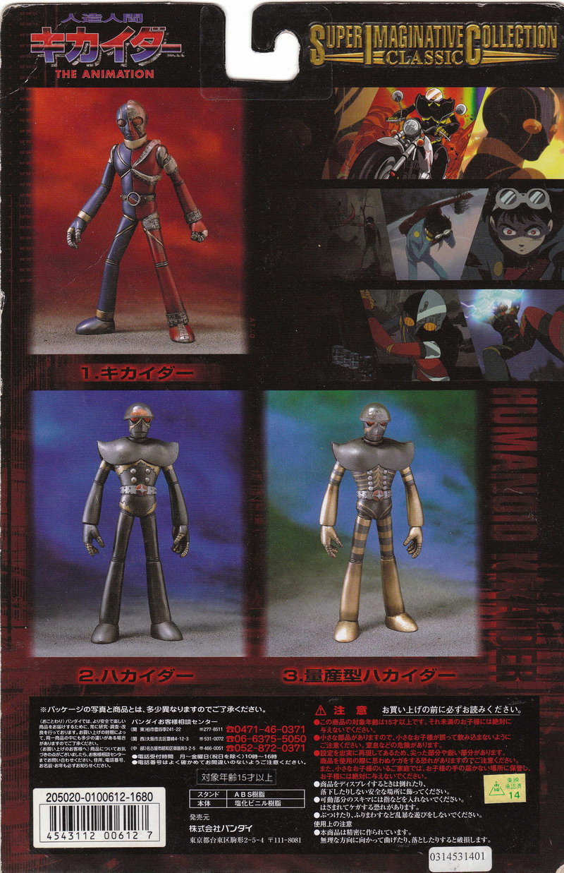 I picked this guy up (below, bottom right) totaly as an impulse buy at a Comic-Con. I have no idea who the character is and the Japanese text cetainly doesn't provide any clues. I am familar with Bandai's S.I.C. series, however, and by all appearances this is an animated version of one of their more high-end collectibles. Great little figure for $10.