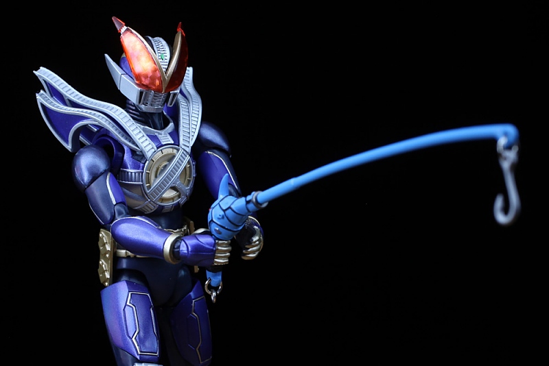 Masked Rider Faiz comes with only 5 hands to swap around but comes equipped with other goodies to stnap onto his outer armor. He also comes with various belt buckles, mobile phone, and a variety of weapons that can attach to each other.
