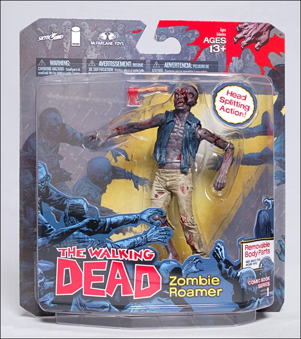 McFarlane Toys has released new packaged photos of their first assortment of Walking Dead comic figures. Wandering on to shelves September 2011, this series includes popular comic characters Officer Rick Grimes and Michonne, along with two zombies for them to battle, the Lurker and Roamer.