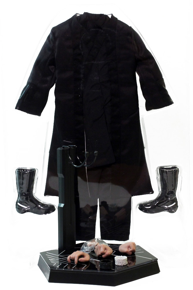 Also included is the black costume that consists of a long sleeved jacket with detachable data disc on the back, long sleeved robe, long sleeved shirt, pair of pants, and a pair of black boots that can be swapped with the feet. I certainly prefer the black outfit over the white, but it's still not perfect. When Kevin enters the End of Line Club, he is seen wearing a hood that is not included here. The black costume is also lined with white fabric to simulate the light features on the costume and unfortunately, it does not light up.