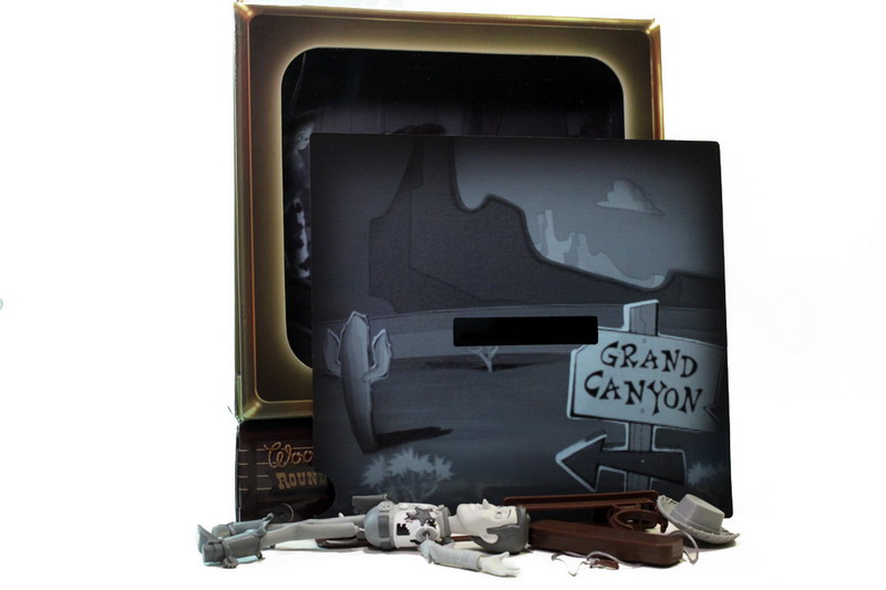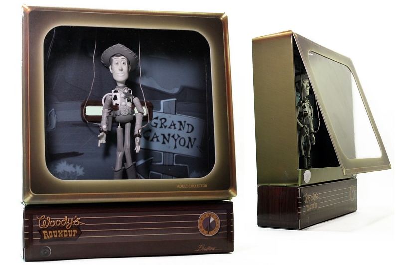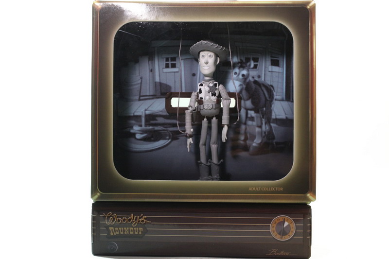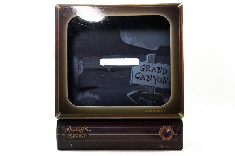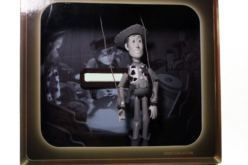 Inside the box, you do find another box in the form of a Budtone television and Woody’s Roundup is on! The TV screen is a window to the toy and for keeping Woody well protected, the figure is wrapped pretty heavily to keep him secure and in place. To get into the figure, simply open the front screen flap and you’re able to adjust Woody to your liking. All the strings, figure, etc are removable too so don’t be concerned if things come apart.