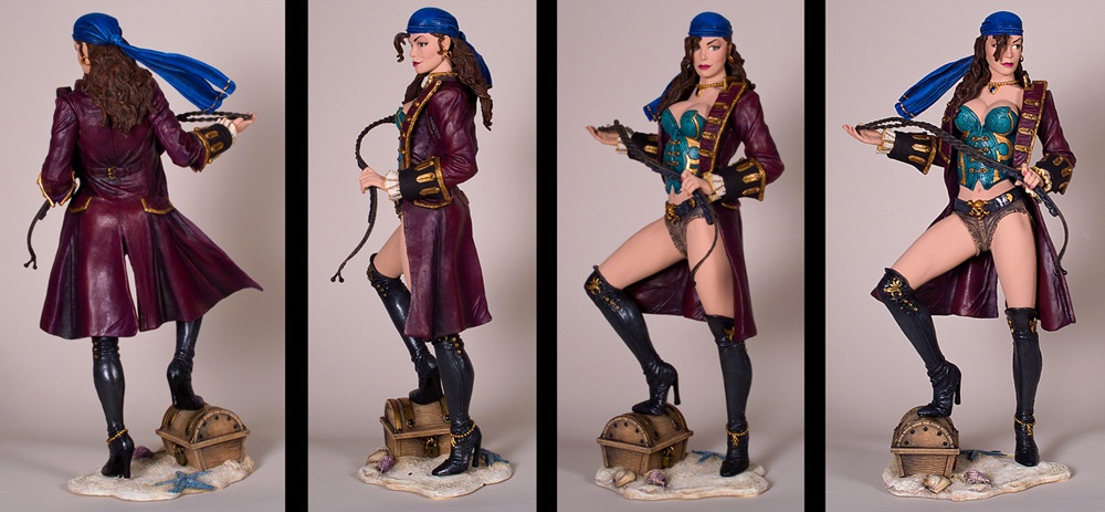 DST provides a packaged look at yet another one of their upcoming New York Comic-Con exclusives: Femme Fatales Anne Bonny. Featuring an all-new color scheme (black hair, a blue corset and a maroon coat), this variant figure will be available for purchase at Diamond Select's booth #338 priced at $40. Grab yours early as only 100 pieces are being made for the event.