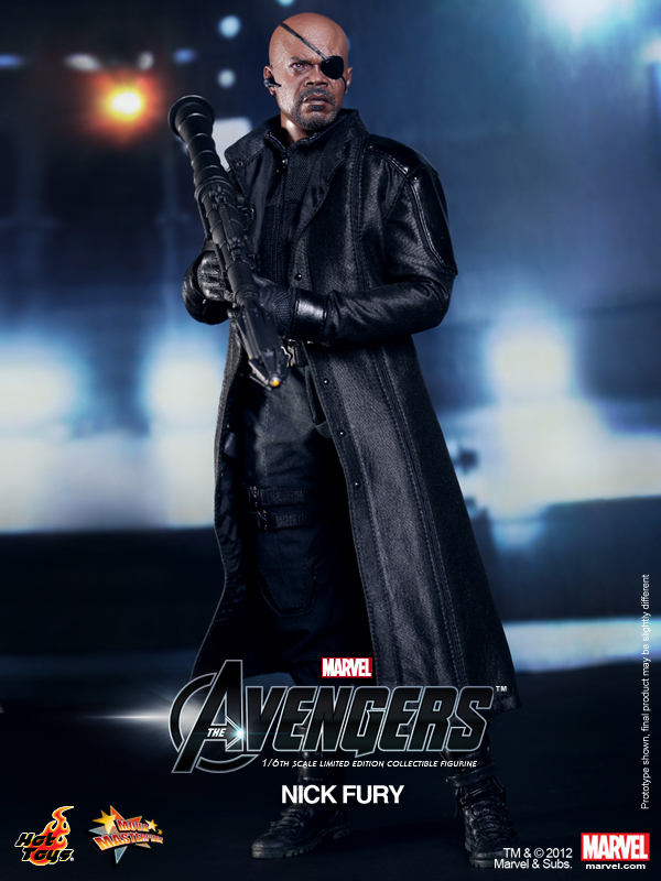 Hot Toys reveals their first limited edition collectible figurine from the upcoming superhero movie The Avengers: Nick Fury, the director of S.H.I.E.L.D. The movie-accurate collectible is specially crafted based on the image of Samuel L. Jackson as Nick Fury in the movie, highlighting a newly developed head sculpt, highly detailed costume, weapons and accessories.